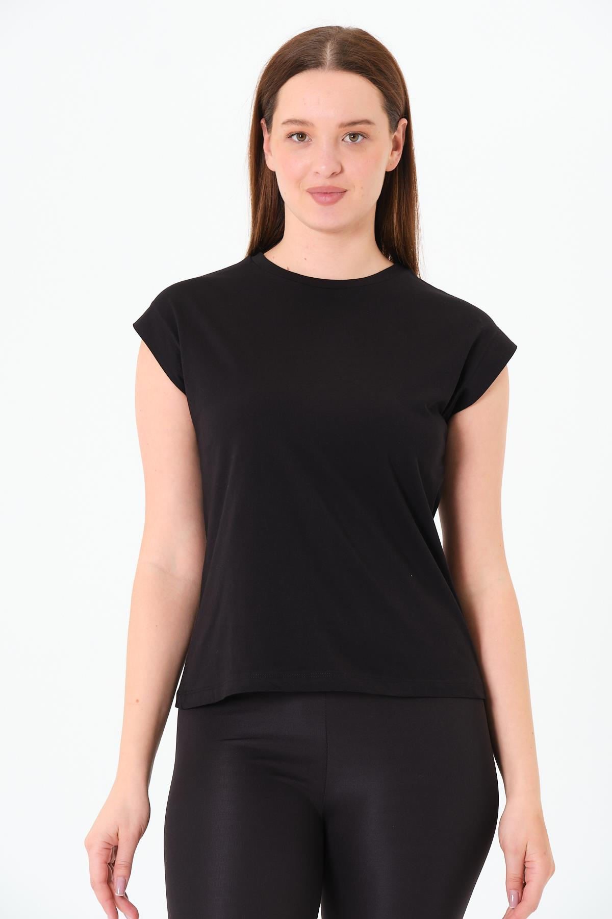226-Yırtmaçlı Kısa Kollu T-shirt Siyah (1065)