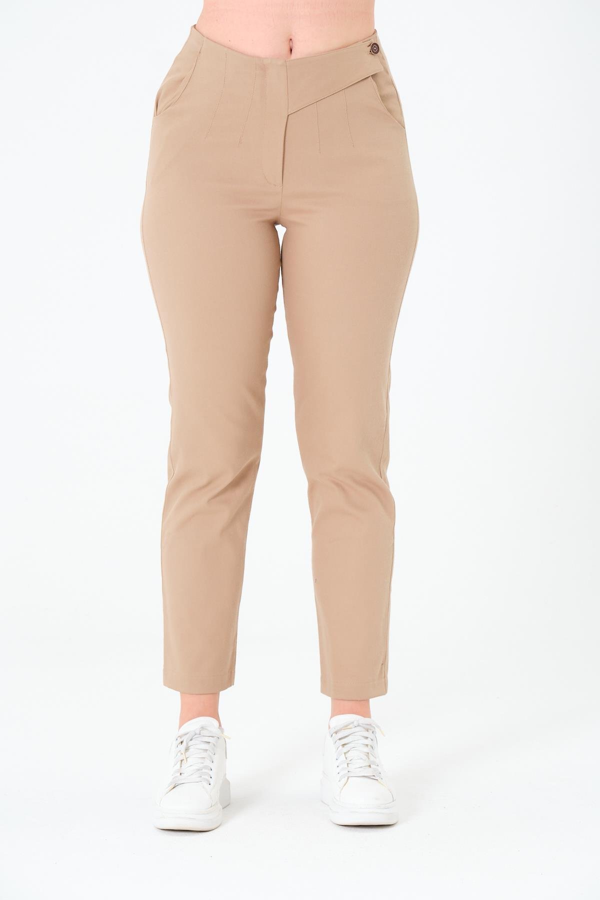 Sortie CollectionTek Düğmeli Pabardin Pantalon Bej
