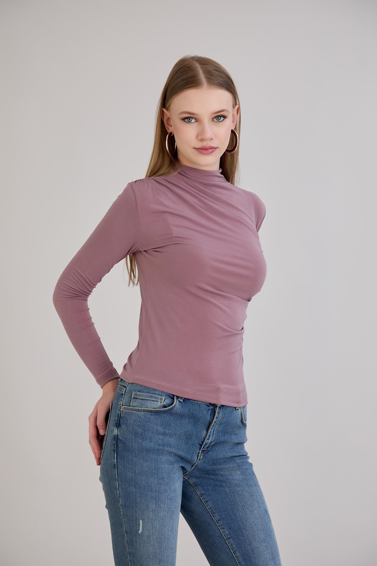 AH133 - Drapeli Tshirt Siyah AH133 - Drapeli Tshirt Ekru AH133 - Drapeli Tshirt Gül