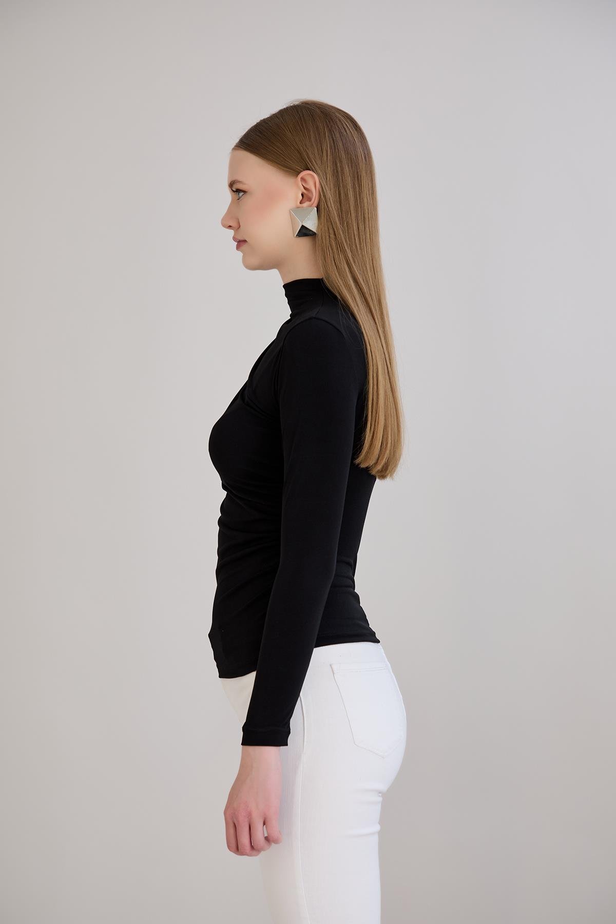 AH133 - Drapeli Tshirt Siyah AH133 - Drapeli Tshirt Ekru AH133 - Drapeli Tshirt Gül