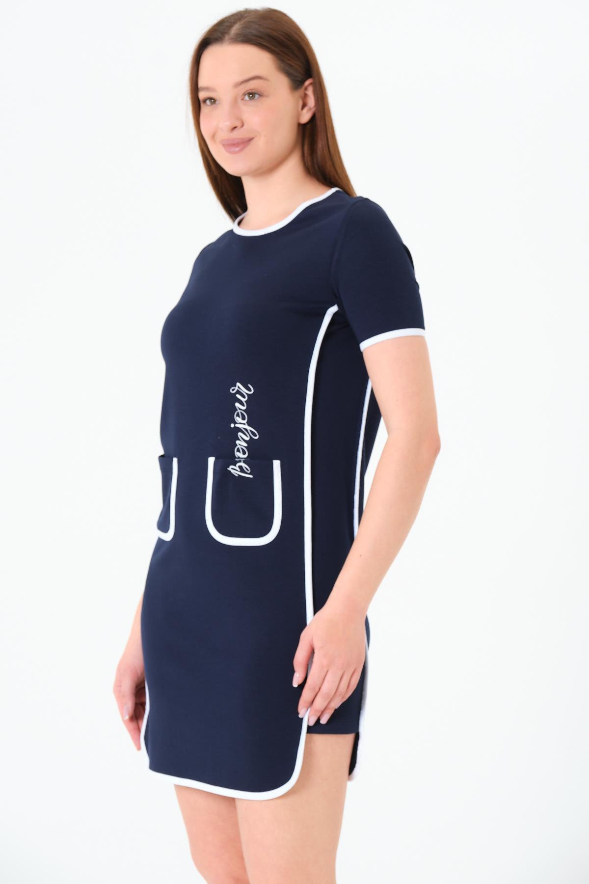 Biyeli Elbise Lacivert (6007)