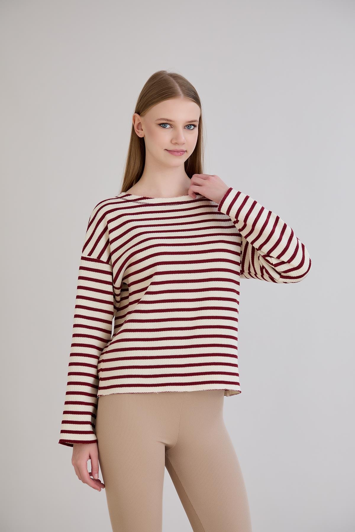 Dikiş Detay Çizgili Sweatshirt Bordo (5079)