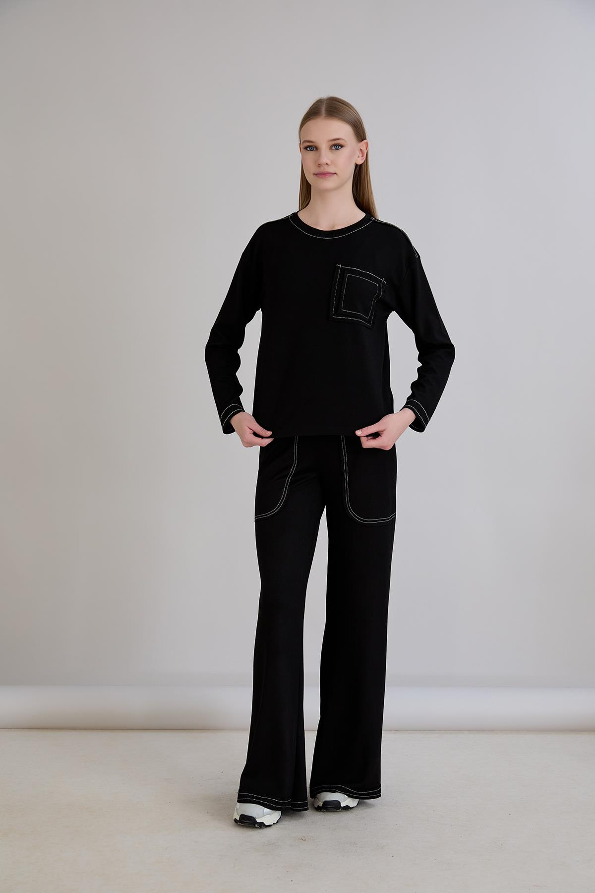 Sortie CollectionDikiş Detay Bisiklet Yaka Modal Sweatshirt Pantolon Alt Üst Takım Siyah