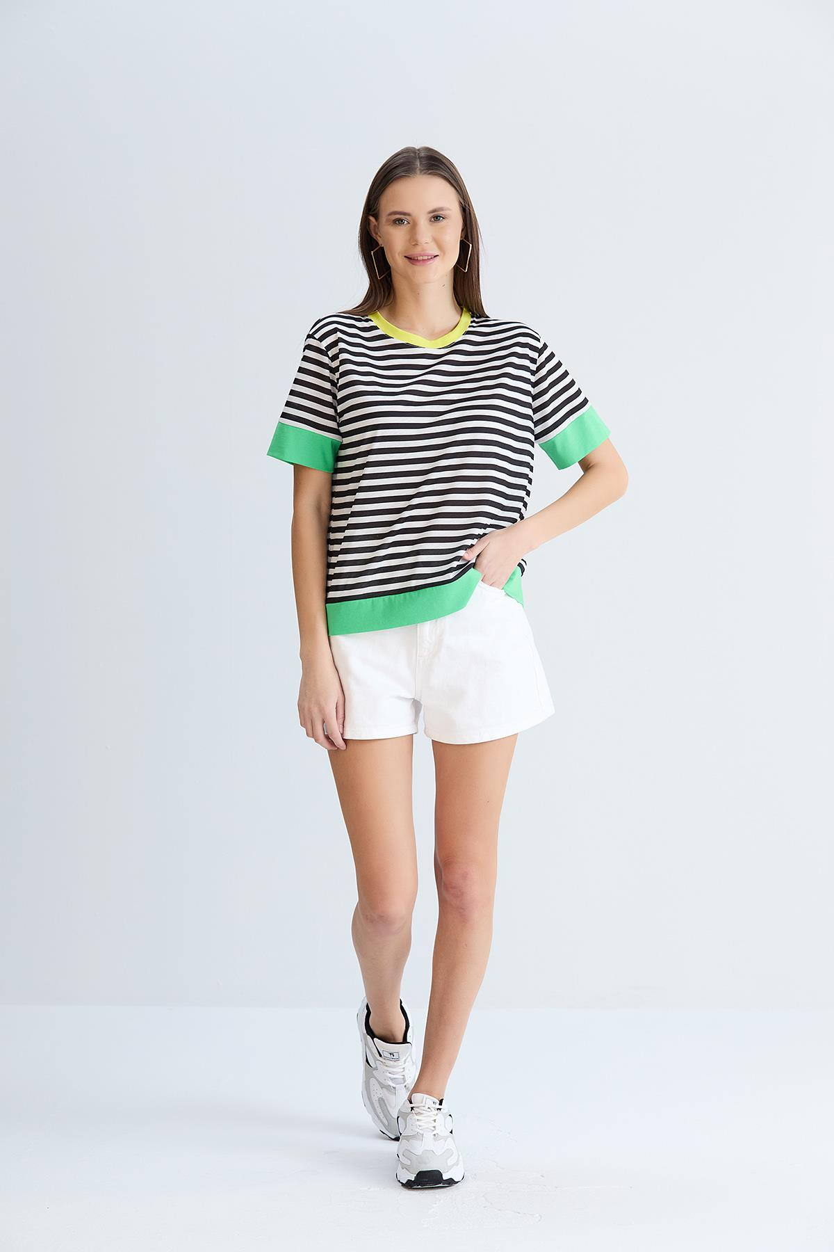 Etek Ve Kol Bantlı Tshirt Yeşil (1035)