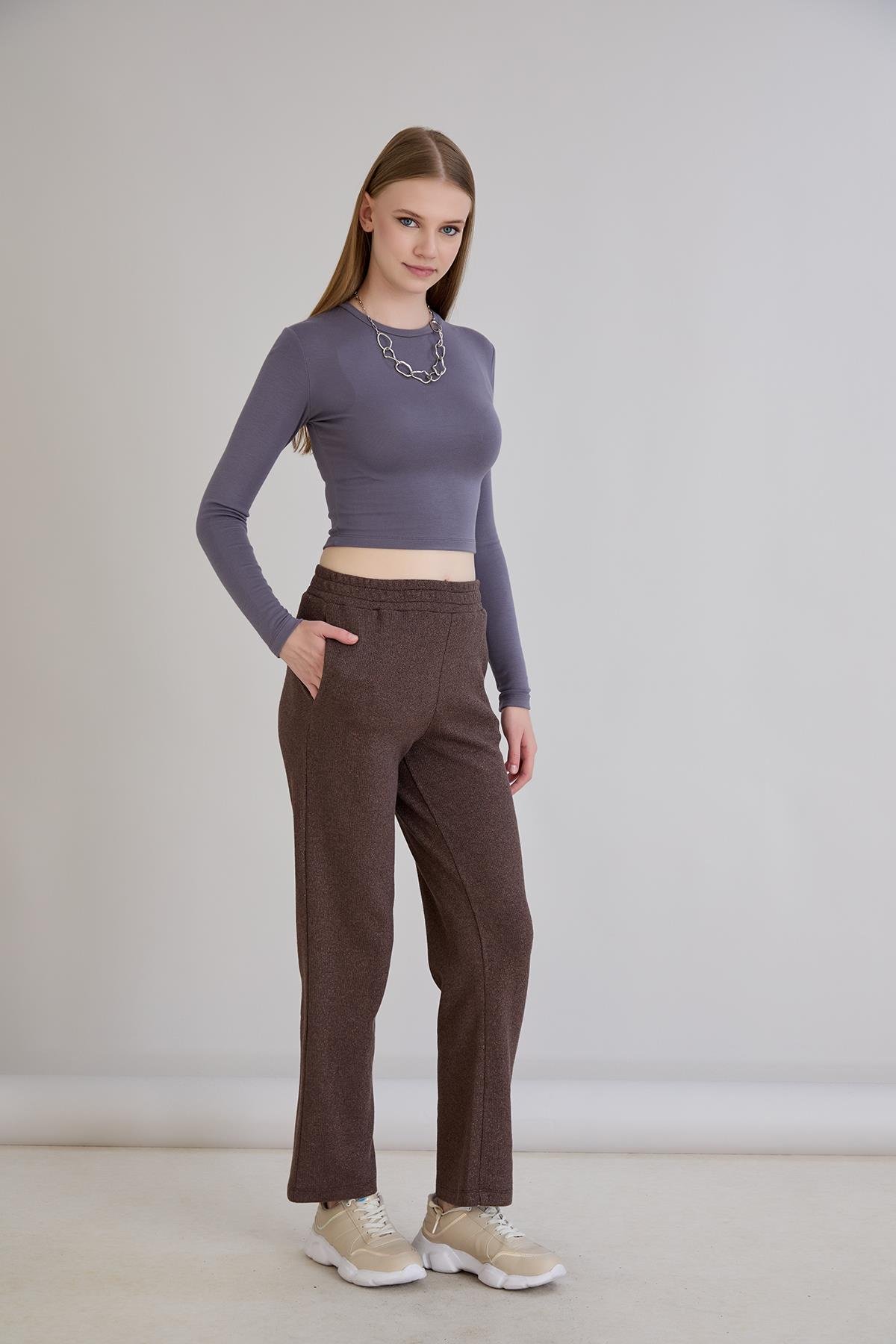 Sortie CollectionSimli Örme Pantolon Kahverengi
