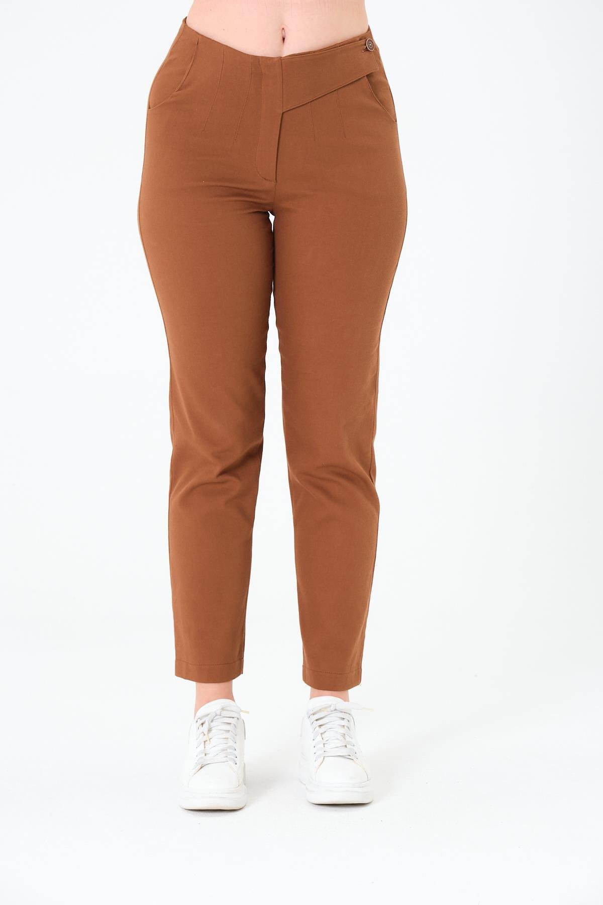 Tek Düğmeli Pabardin Pantalon Kahverengi (3077)