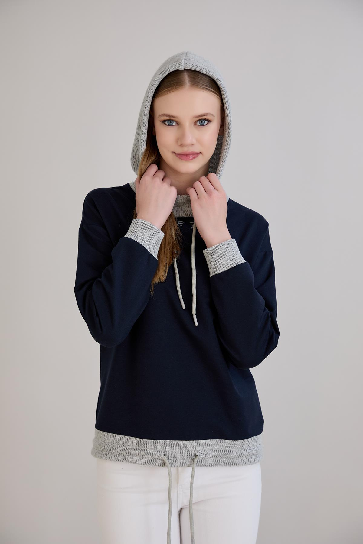 Triko Kapşonlu Sweatshirt Siyah Triko Kapşonlu Sweatshirt İndigo