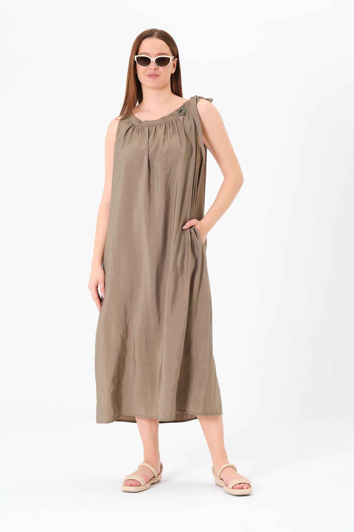 Yaka Bağcıklı Büzgülü Elbise Haki (6005)