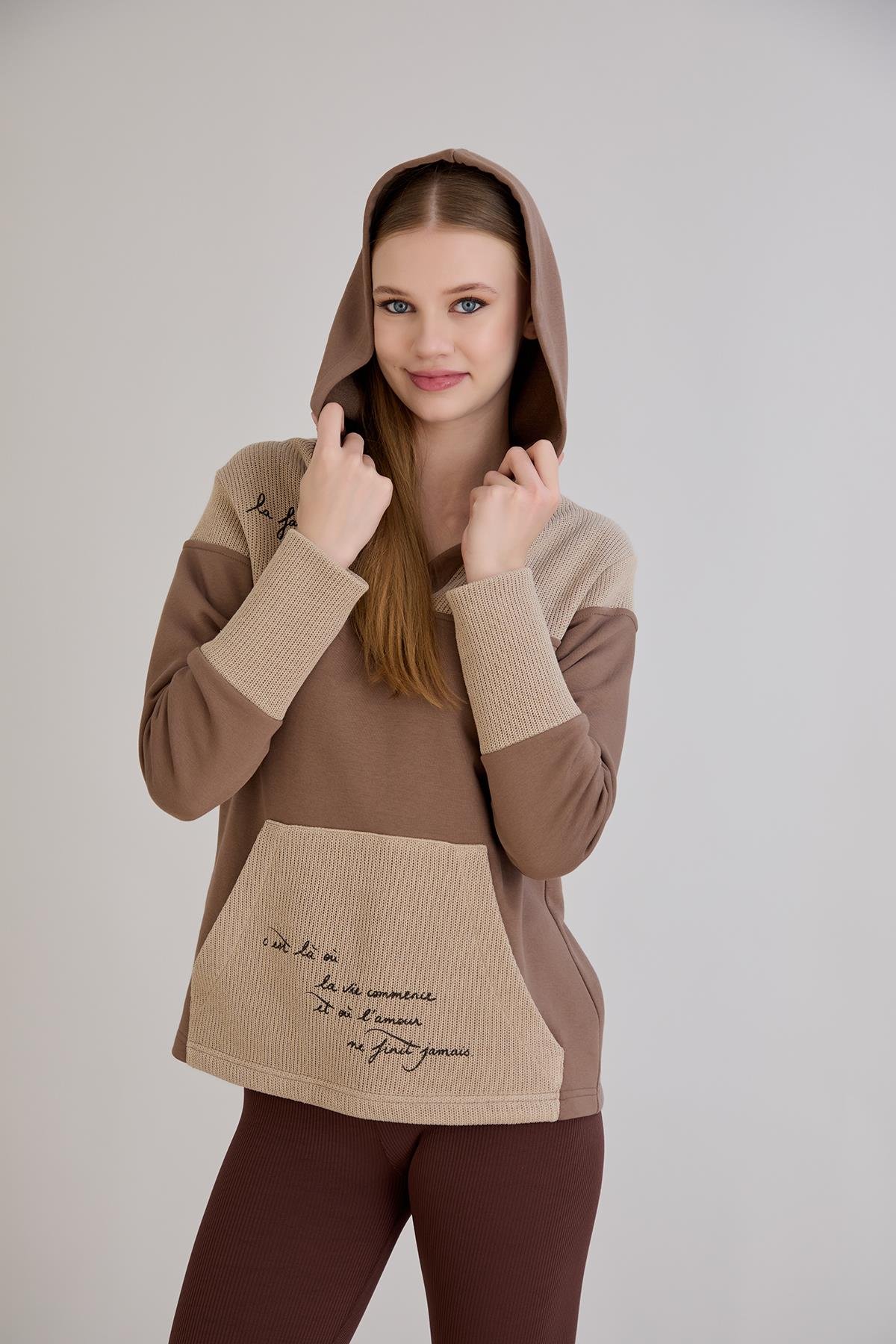 Kanguru Cepli Triko Garnili Sweatshirt Kahverengi (5085)