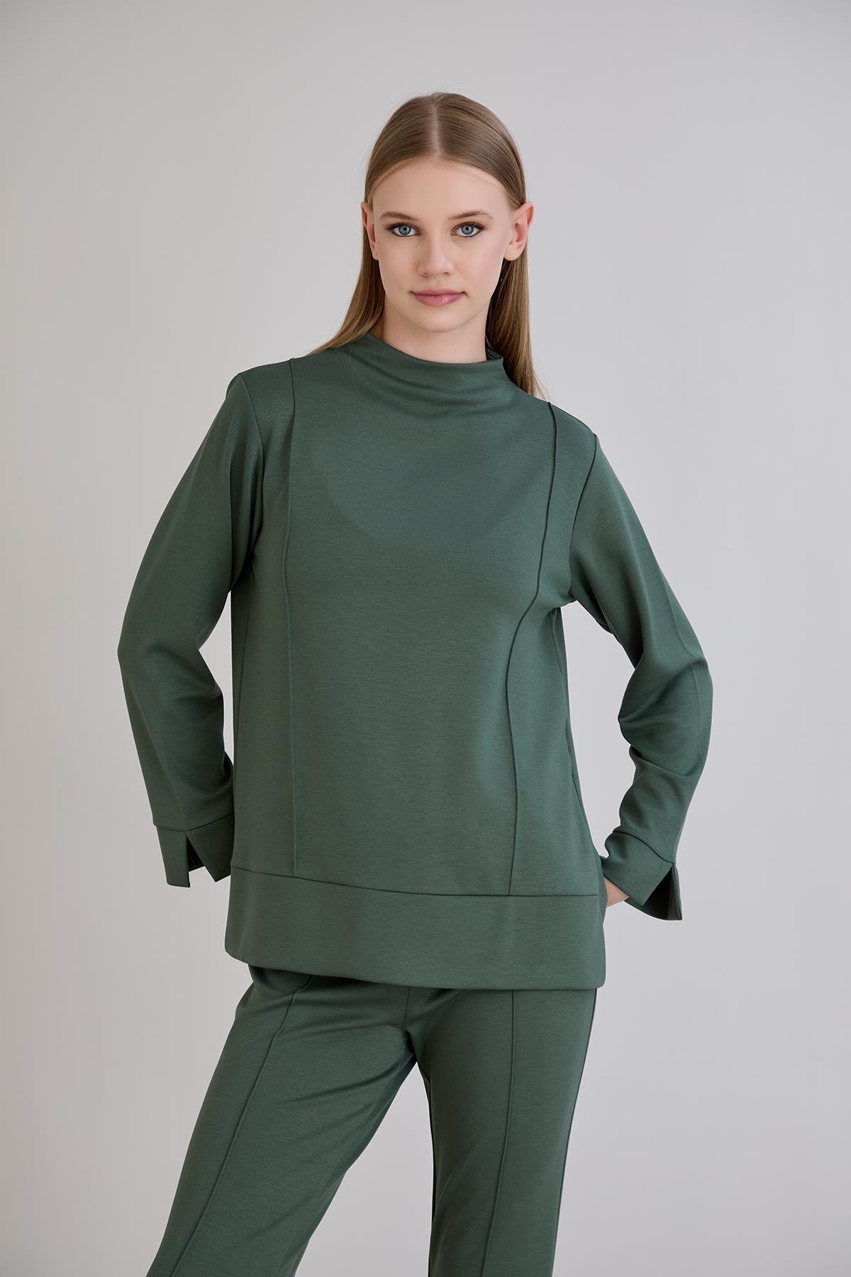 Sortie CollectionNervürlü İki İplik Bluz Haki